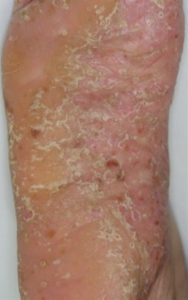 軽度の皮疹とは、軽度の紅斑、乾燥、落屑主体の病変です