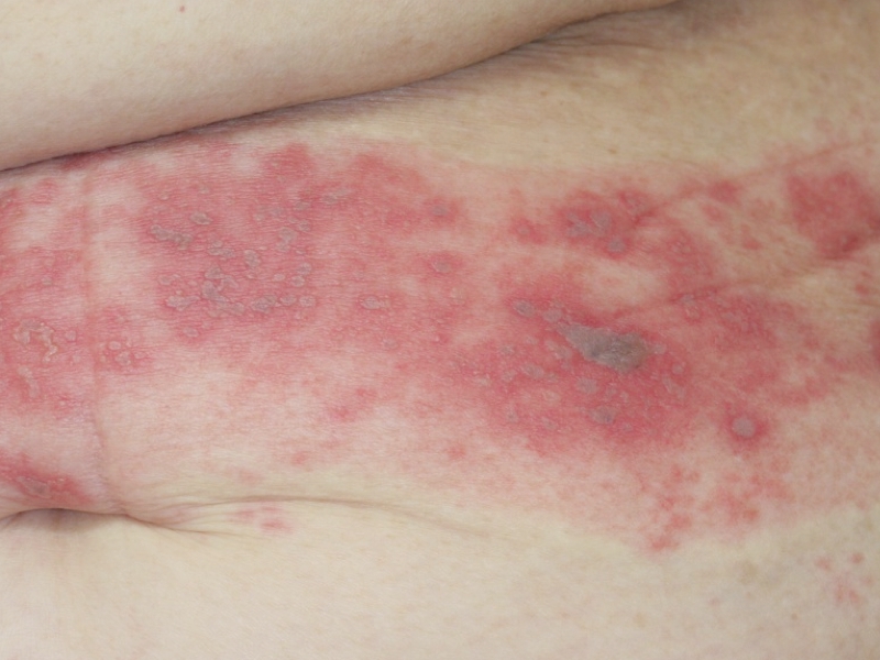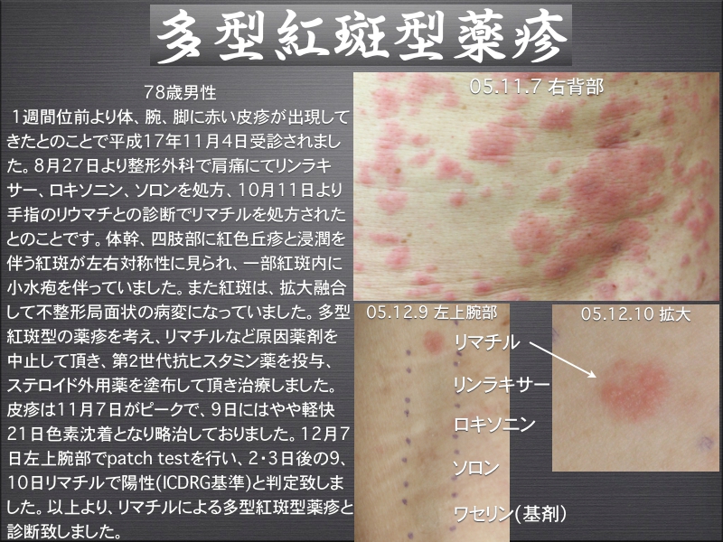 強い炎症を伴う皮疹とは、紅斑、丘疹、びらん、浸潤、苔癬化などを伴う病変です