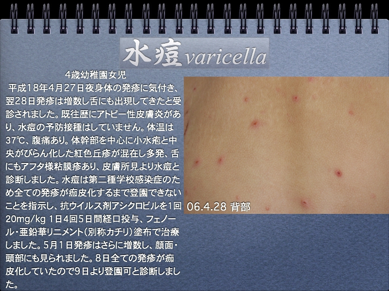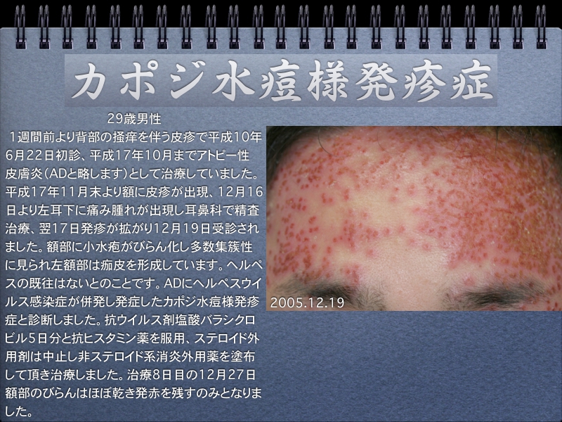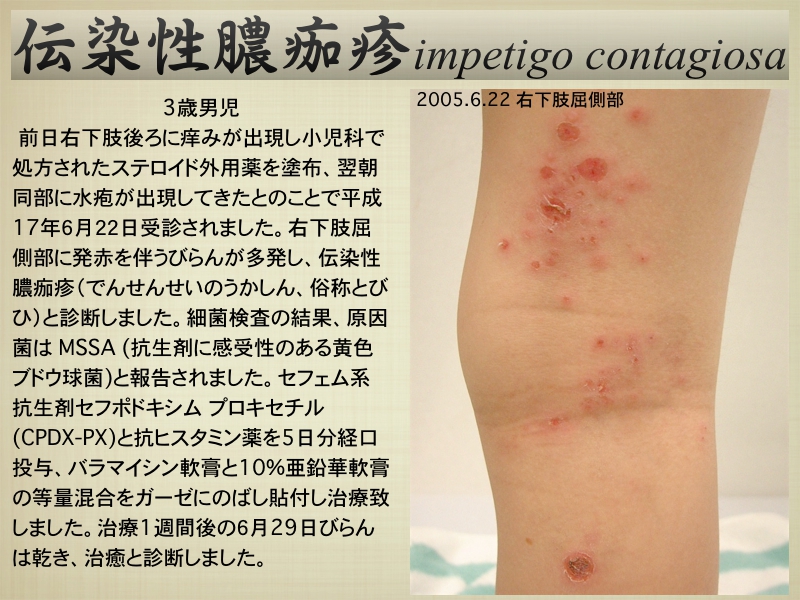 伝染性膿痂疹(とびひ)、伝染性軟属腫(みずいぼ)、カポジ水痘様発疹症