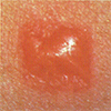 (5)伝染性軟属腫(みずいぼ)の中心にある軟属腫小体を見つけます