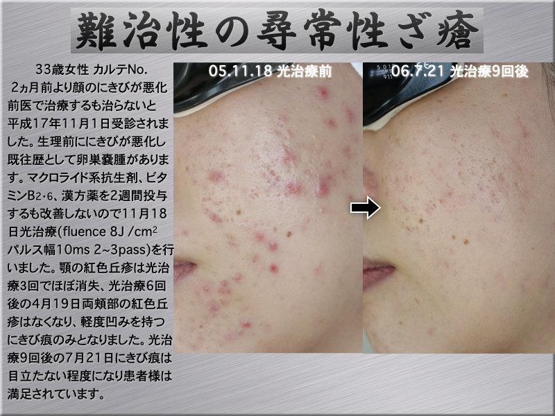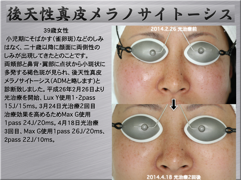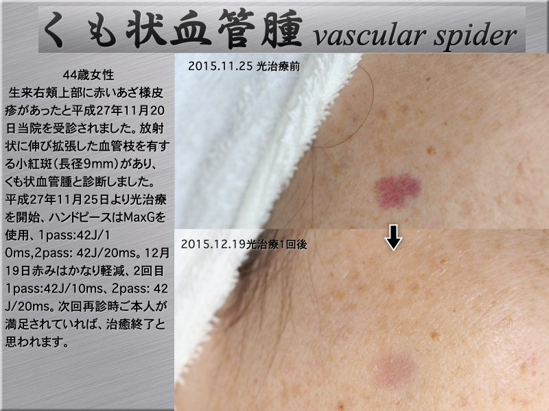 - 顔面に多発する症例は、光治療(ハンドピースはMax Gがお勧め)