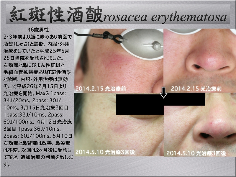 ・酒さ(第1度 紅斑性酒さ、第2度 酒さ性ざ瘡、第3度 鼻瘤)